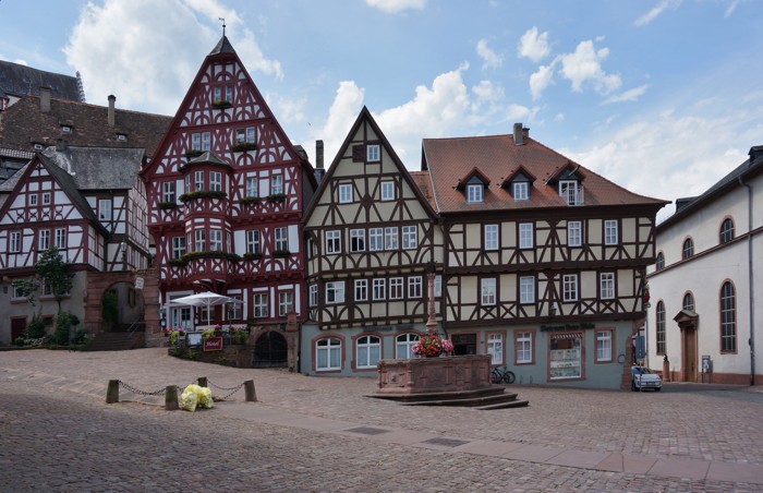 Následně přijíždíme do asi nejkrásnějšího městečka dne - Miltenbergu, kde jsou opravdu úchvatné hrázděné domy. Při projížděni se sice musíme vyhýbat několika japonským a britským výpravám, které zabírají vždy celou už tak úzkou Haupstraße, ale průvodci jsou na cyklisty zvyklí a vždy nám připraví uličku na projetí. Za městem se konečně vydáváme na sever a těšíme se z jižního větru.