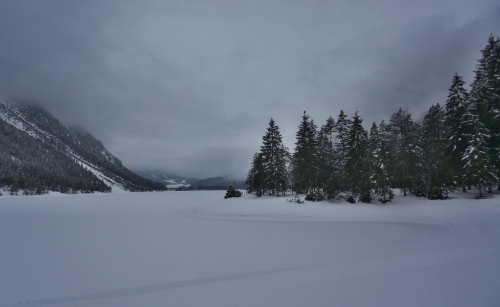 Kolem jezera Heiterwanger see. Vlakem z Lermoosu do Heiterwangu. Pěšky kolem jezera a pak po cyklostezce Via Claudia Augusta do Bichlbachu. Návrat vlakem do Lermoosu. Cestou zjišťujeme, že stopy v údolí jsou sjízdné. |
