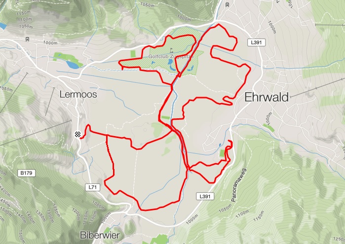 Vlakem z Lermoosu jen do Lahnu. Nejdříve po A11 do Bichlbachu a A13 do Heiterwangu. Zpět opět do Bichlbachu po B11, do Lahnu po A11 a do Lermoosu po Arena-Loipe. Končíme už v Griesu, odkud dojíždíme do hotelu autobusem. |
