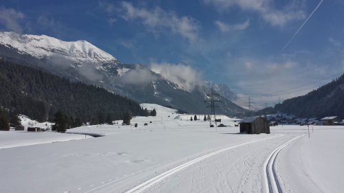 Vlakem z Lermoosu opět do Heiterwangu a na lyžích zpět až do hotelu. Do Bichlbachu po B11, do Lahnu po A11 a do Lermoosu po Arena-Loipe, která je u nádraží Lermoos už na hraně a tak musíme dvakrát pěšky. Do hotelu dojíždíme po A1. |